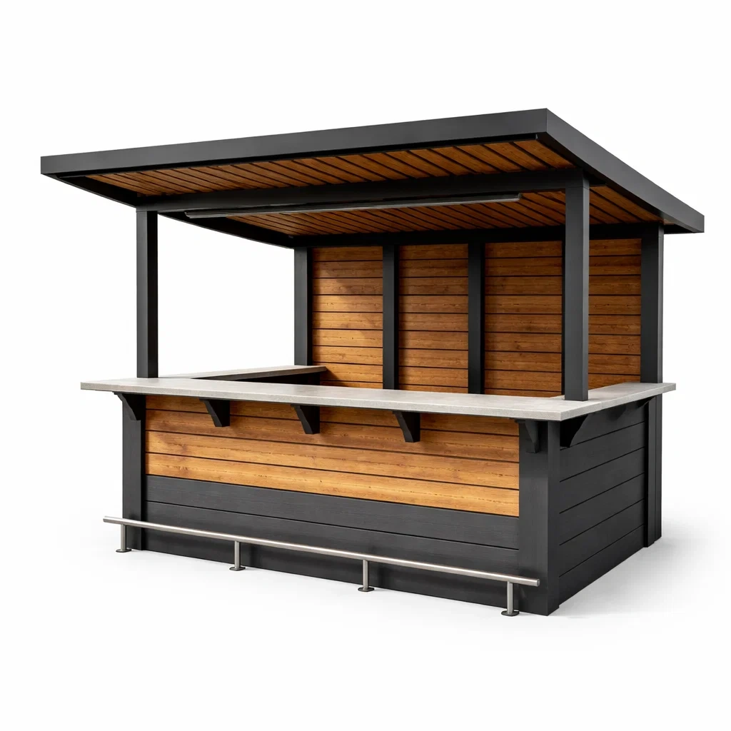Outdoor bar en bois massif et métal traité brun noir 220x180x100 cm