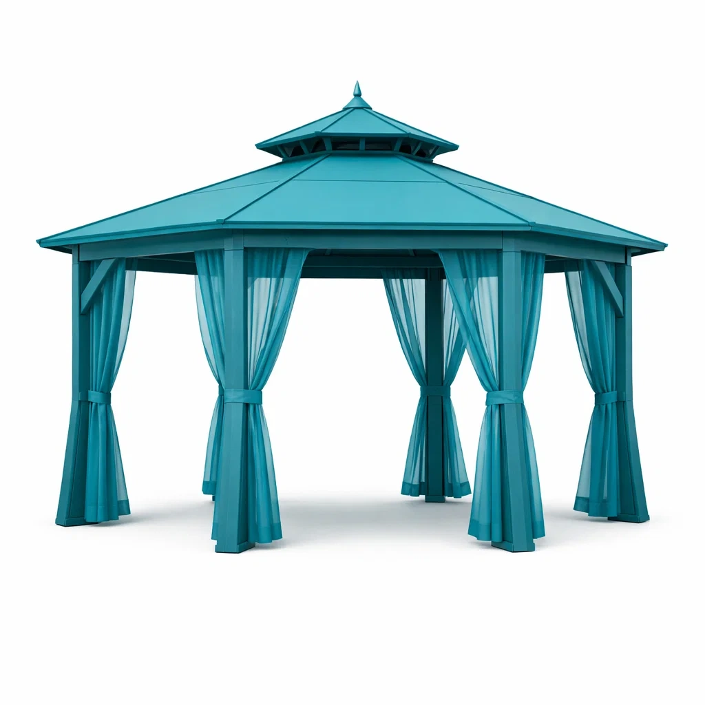 Matériau: Cadre en aluminium, toit en acier galvanisé, rideaux en polyester.
